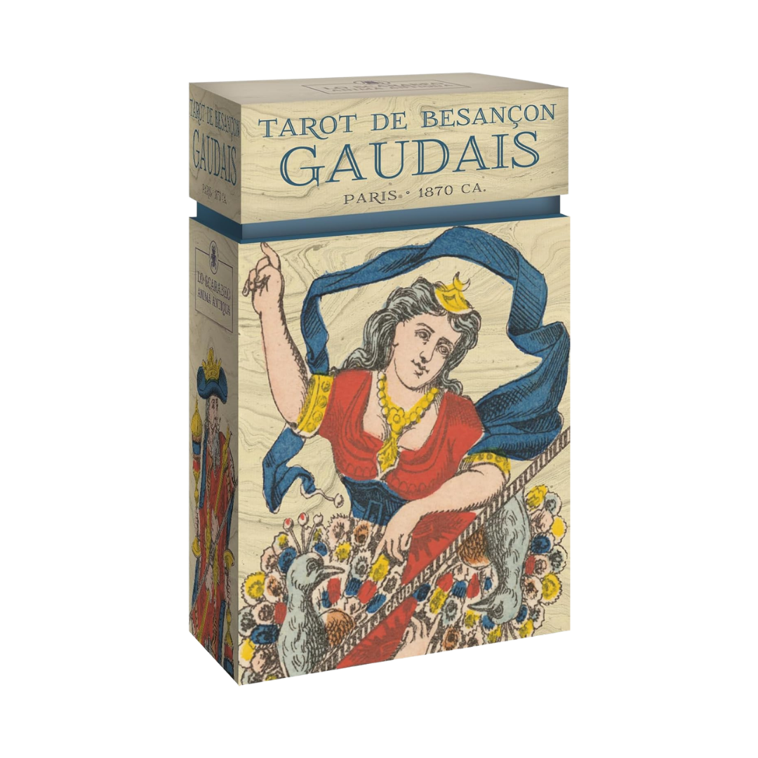 Questo pezzo unico appartiene alla tradizione dei Tarocchi di Besançon, dal nome della città francese dove questo tipo di carte veniva originariamente stampato. Prodotto da Jean Gaudais tra il 1871 e il 1879, questo mazzo è caratterizzato da un originale gioco di simmetrie creato da una corda diagonale che rispecchia le figure raffigurate nelle carte. Facendo parte della longeva, e ancora molto popolare, tradizione francese, questo mazzo rappresenta un ramo importante dell'albero genealogico di Besançon. Come ogni altro prodotto della linea Anima Antiqua, anche questo è disponibile in un'edizione limitata di 3.999 copie.