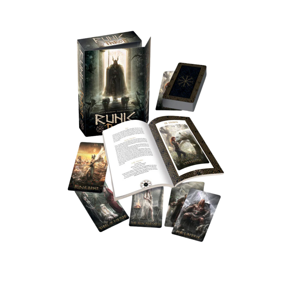 Valhalla: il Regno degli Dei. Dall’autore dei Tarocchi del Cielo e della Terra, i Tarocchi Runici sono il miglior mazzo ideato sul tema della mitologia norrena. Questo mazzo è il possente e feroce custode di un’aura antica. Intreccia insieme la saggezza delle Rune, la poesia degli Scaldi, il valore degli Einherjar e l’intramontabile dono della vita e della natura. I Tarocchi Runici sono un tributo alla scintilla divina insita nell’umanità. Il libro che li accompagna in questa edizione è scritto dalla celebre esperta statunitense Jaymi Elford.